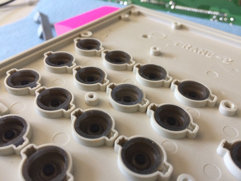 It really is a pretty ingenious system if you want to cut costs, which is why rubber dome and its bastard cousin foam-and-foil are so popular on really budgety computers. They don’t necessarily have to feel awful either (although this one certainly does); on the Atari TT they substituted stiffer, more pleasant conductive rubber domes in the same keyboard design.